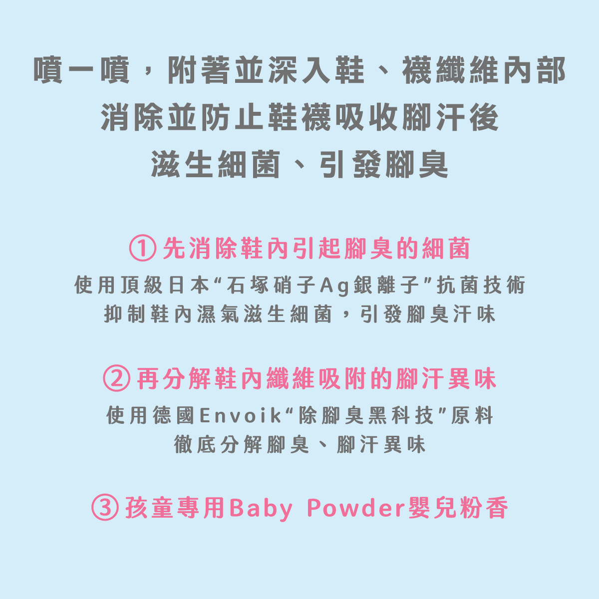 孩童專用Ag銀離子-鞋、襪抗菌+除臭噴霧(嬰兒粉香)