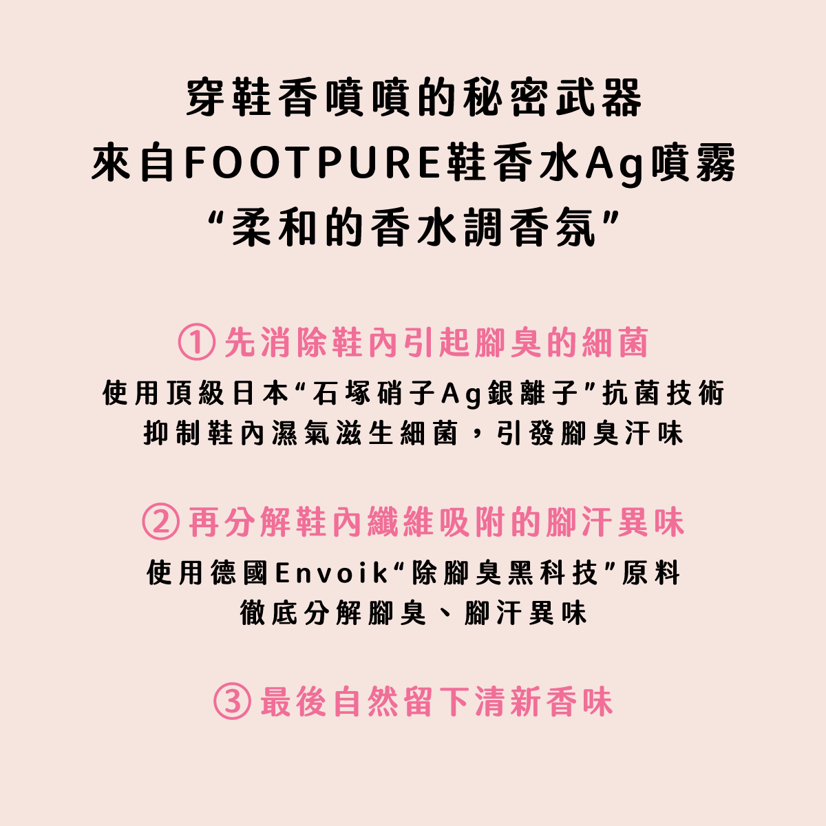 |主要成分|德國除臭抗菌成份、日本銀離子抗菌成份、乙醇、香料、液化石油氣推進劑