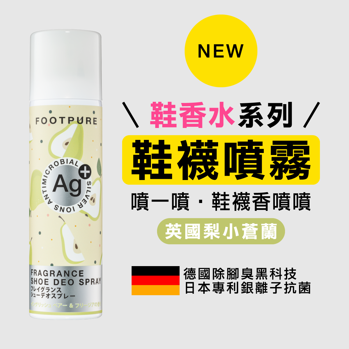 |品 名|鞋香水Ag銀離子-鞋、襪抗菌+除臭噴霧(英國梨小蒼蘭)